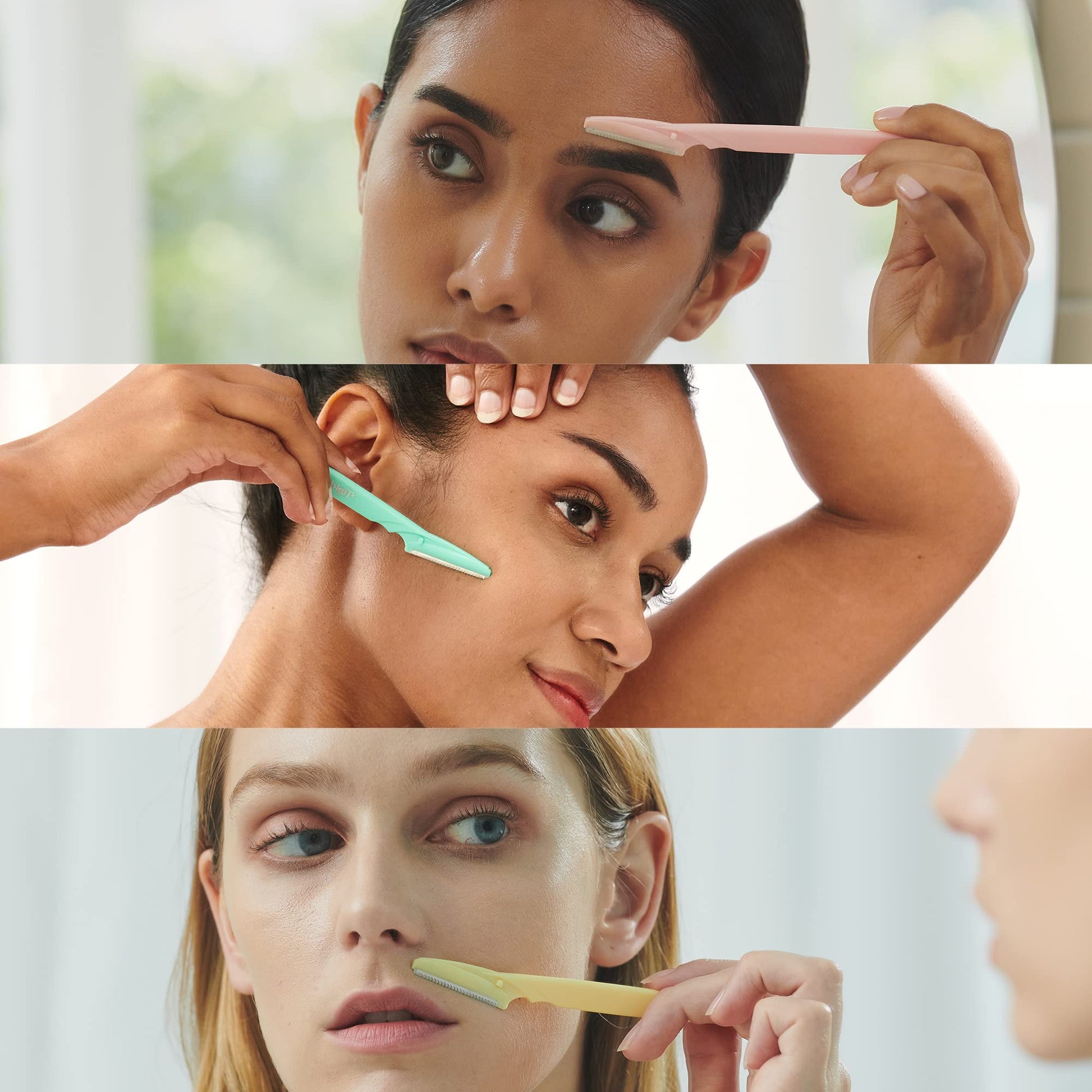 Shape, define, and smooth with ease. Our eyebrow razors are designed for gentle, precise grooming—perfect for cleaning up stray hairs, shaping arches, or maintaining a flawless finish between appointments. Each razor features a fine stainless-steel blade and an easy-grip handle for safe, effortless control. Ideal for eyebrows, peach fuzz, and delicate facial areas.